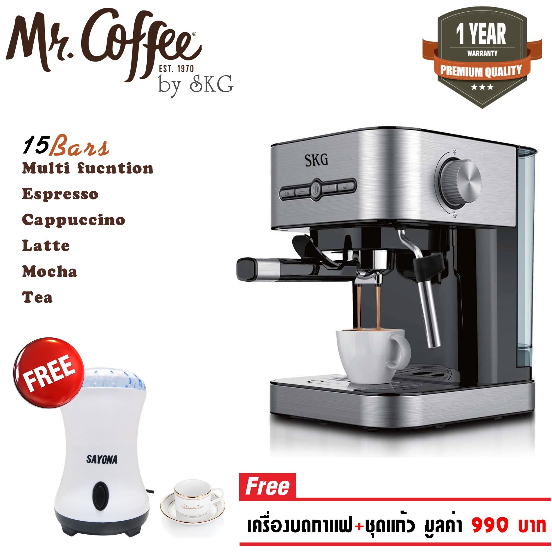 รีวิว SKG เครื่องชงกาแฟสด 1050W 1.6ลิตร รุ่น SK-1203 สีเงิน แถม!! เครื่องบดกาแฟไฟฟ้า, แก้วกาแฟ